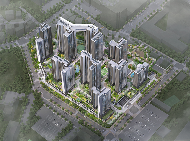 | 규모 | 대지면적: 41,376.50㎡ (약 12,516.39 평) 연면적: 171,236.84㎡ (약 51,799.14평) 지하 3층 ~ 지상 32층, 9개동 공동주택 880세대 |